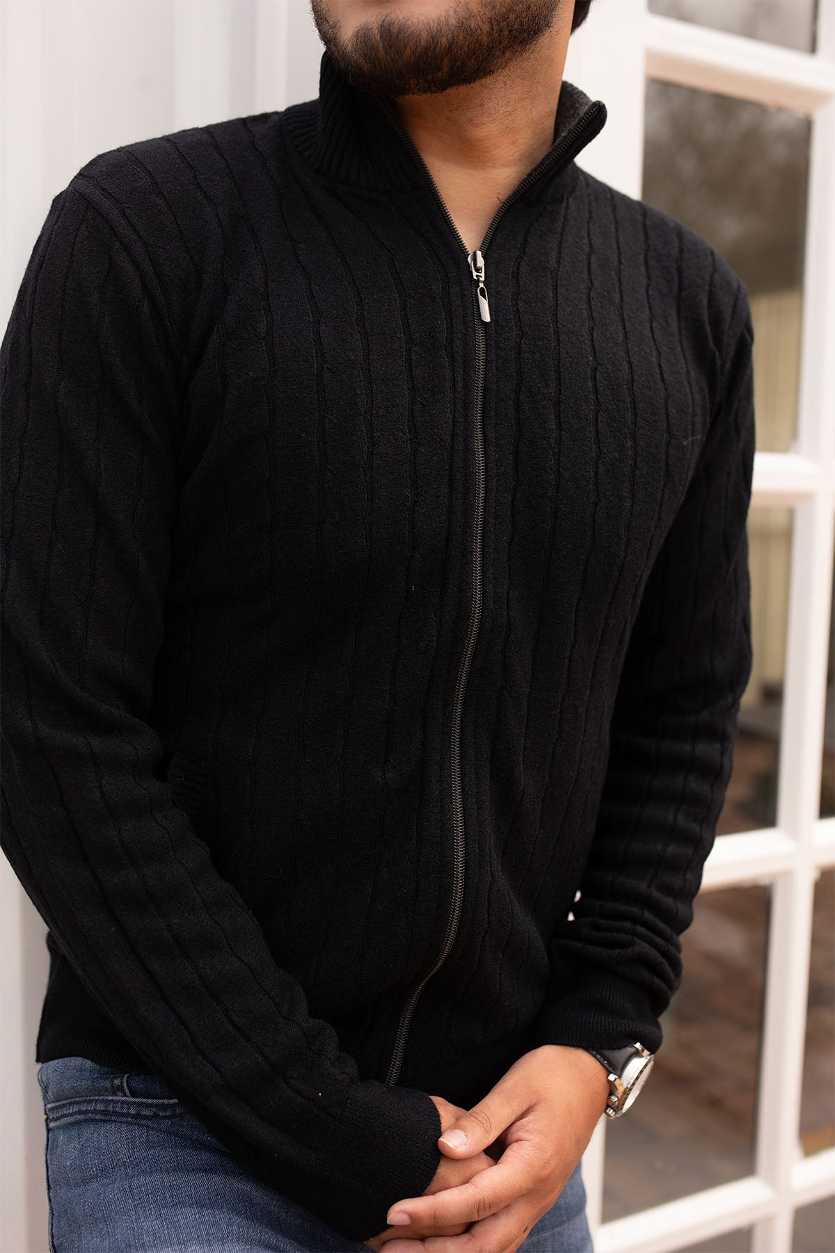 Elegante chaqueta de punto con diseño de trenzas tejido en nuestro tejido cachemire feeling (100 % acrílico), que aporta suavidad y cuerpo. Cuenta con apertura frontal para un ajuste cómodo y versátil. Térmica e hipoalergénica, ligera y resistente al desgaste; lavable a máquina, de secado rápido y sin pérdida de color. Disponible en tonos atemporales para elevar tu look diario.