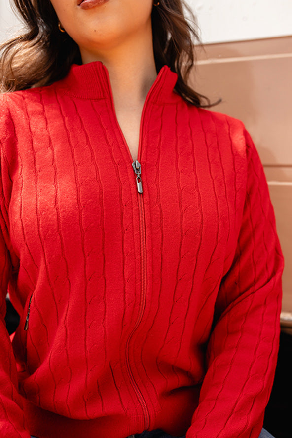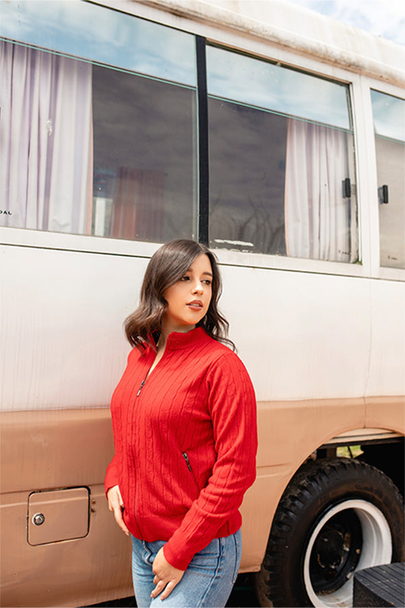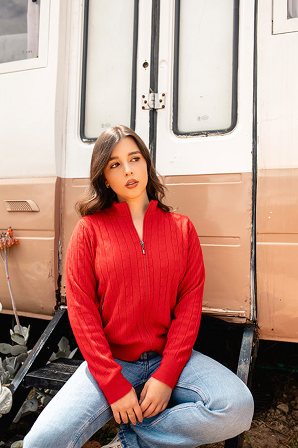 Confeccionada tejido en nuestro cachemire feeling (100 % acrílico), esta chaqueta para mujer combina la delicadeza del trenzado frontal con una media cremallera metálica para un ajuste cómodo y elegante. Su tacto ultra‑suave y ligereza la hacen perfecta para capas, mientras que sus propiedades térmicas e hipoalergénicas mantienen el calor y cuidan la piel. Resistente al desgaste, lavable a máquina, de secado rápido y sin pérdida de color, está disponible en tonos atemporales para complementar cualquier outfit con sofisticación y comodidad.