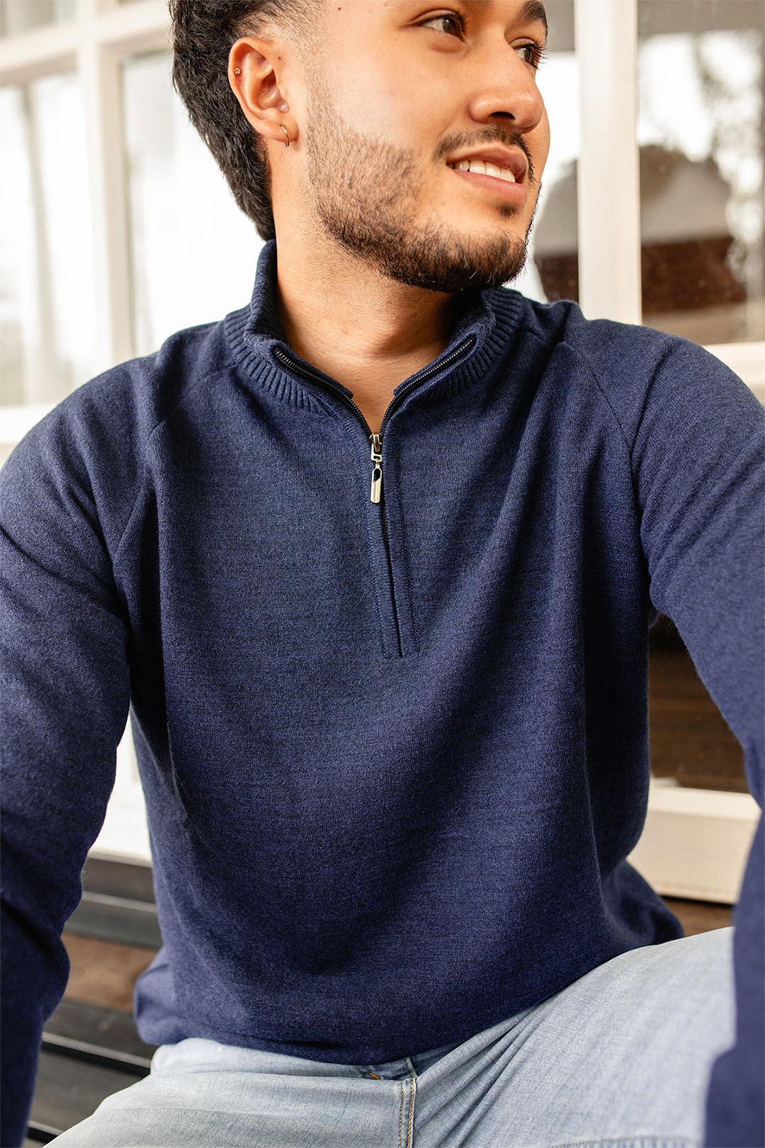 Minimalista y moderno tejido en cachemire feeling (100 % acrílico), ofrece una superficie lisa y una media cremallera metálica para mayor versatilidad. Ultra‑suave, ligero y térmico, hipoalergénico y resistente al desgaste. Lavable a máquina, de secado rápido y sin pérdida de color. Disponible en una paleta de tonos esenciales para un estilo cotidiano impecable.