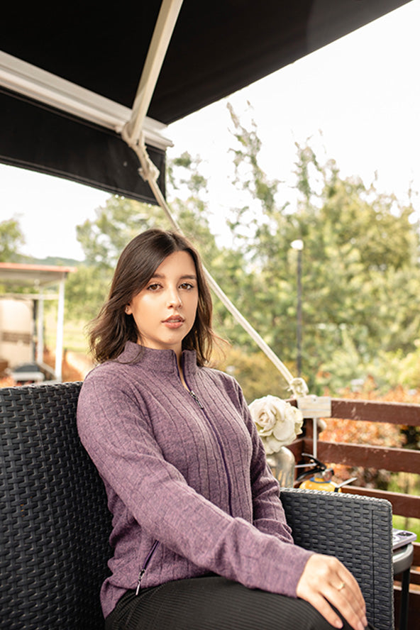 Confeccionada tejido en nuestro cachemire feeling (100 % acrílico), esta chaqueta para mujer combina la delicadeza del trenzado frontal con una media cremallera metálica para un ajuste cómodo y elegante. Su tacto ultra‑suave y ligereza la hacen perfecta para capas, mientras que sus propiedades térmicas e hipoalergénicas mantienen el calor y cuidan la piel. Resistente al desgaste, lavable a máquina, de secado rápido y sin pérdida de color, está disponible en tonos atemporales para complementar cualquier outfit con sofisticación y comodidad.
