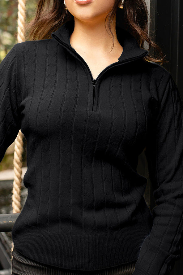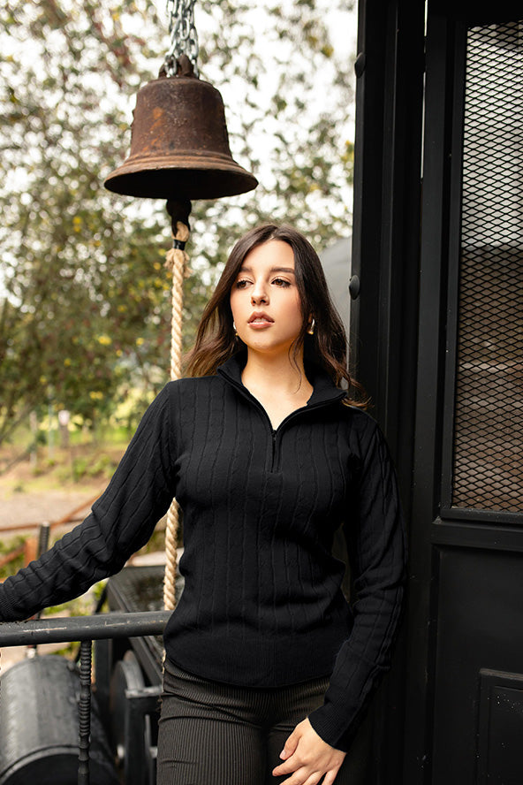 Sweater trenzado media cremallera - Negro